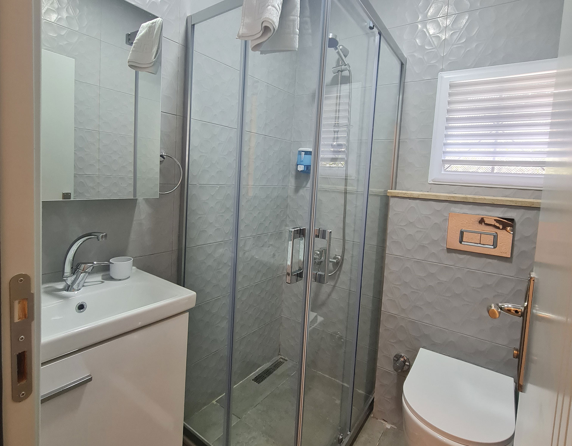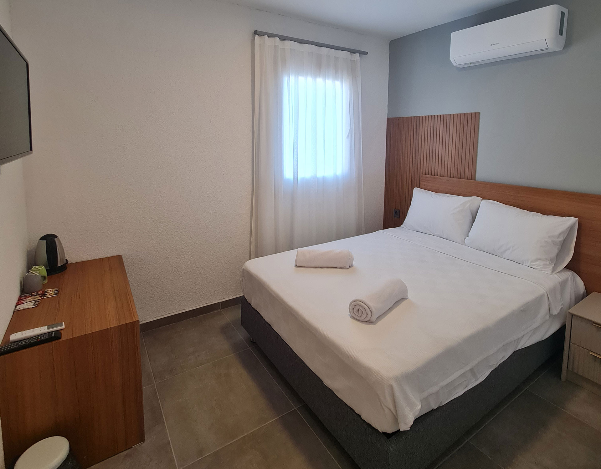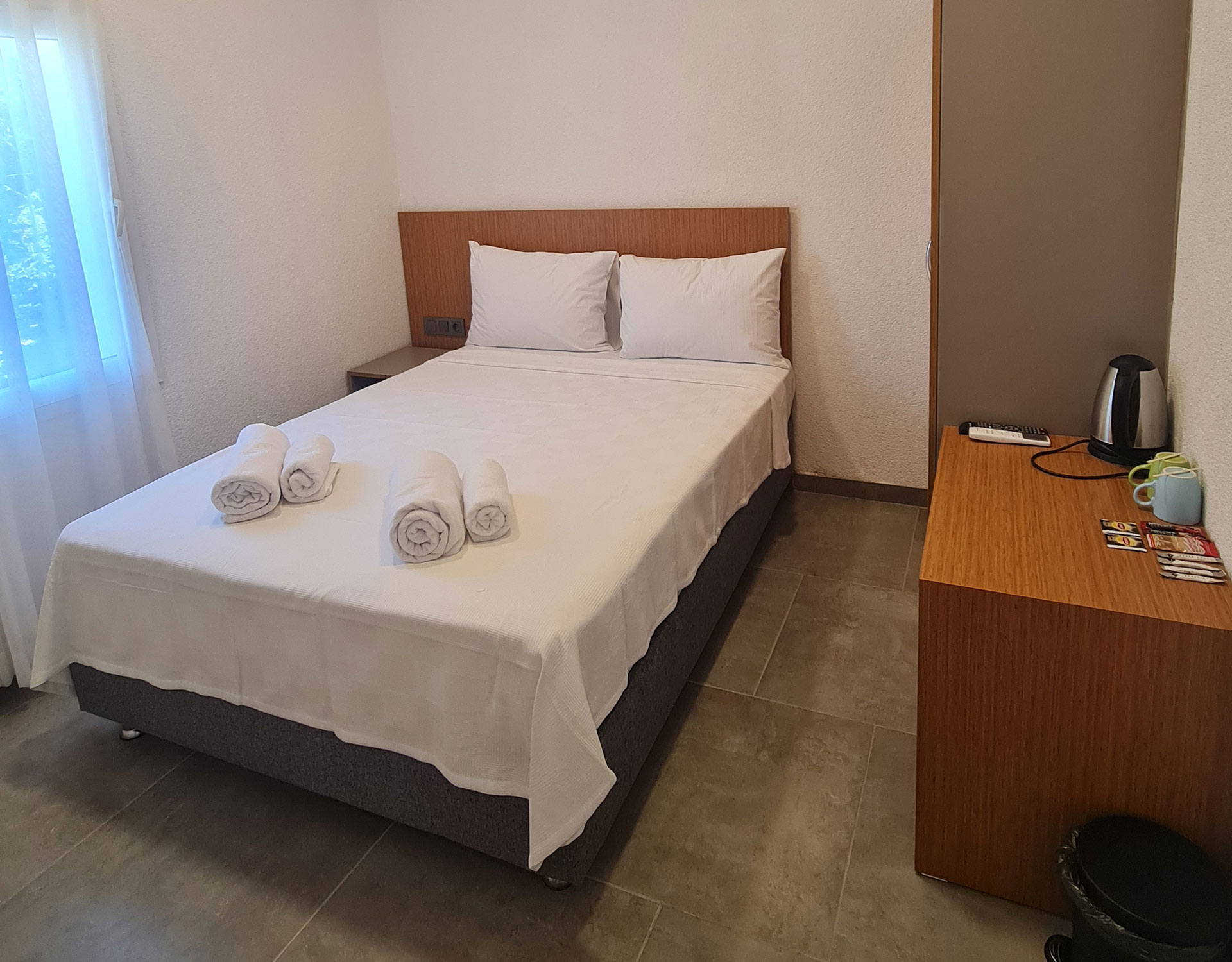 Bodrum Time Pansiyon’un çift kişilik normal odaları, 25 m² büyüklüğündeki şık ve modern tasarımıyla misafirlerine rahat bir konaklama deneyimi sunuyor. Maksimum 2 kişi kapasiteli bu odalar, çift kişilik konforlu bir yatak ile donatılmıştır ve hem kısa hem uzun süreli konaklamalar için idealdir. Odanızda klima, ücretsiz Wi-Fi ve düz ekran televizyon gibi olanaklar bulunurken, banyonuzda ise hijyenik koşullarda ferah bir kullanım alanı sunulmaktadır.